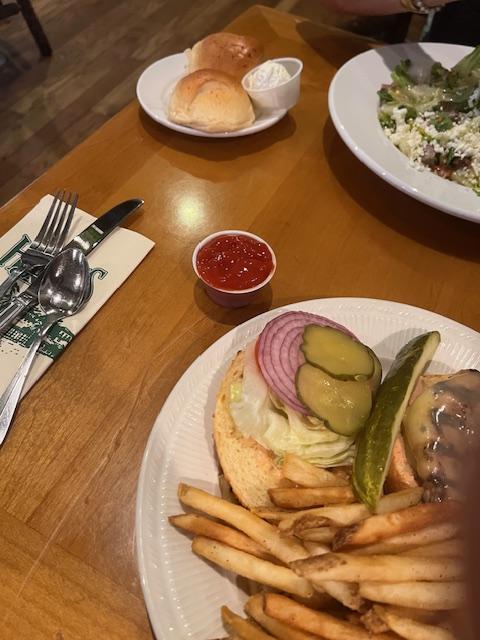 I had a salad with beef and I did not realize it was cold beef. I do not recommend this dish as it has almost no taste. The chicken burger was ok.